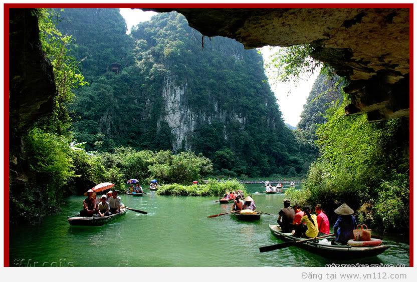 Chiều: 13h00: Du khách ra ôtô lên thuyền đi dọc theo suối giữa cánh đồng lúa thăm khu du lịch Tràng An nơi những dải đá vôi, thung lũng và những sông ngòi đan xen tạo nên một không gian huyền ảo, kỳ bí, quý khách đi đò thăm Hang sáng, Hang tối, Hang nấu rượu và tìm hiểu văn hóa lịch sự nơi đây.
